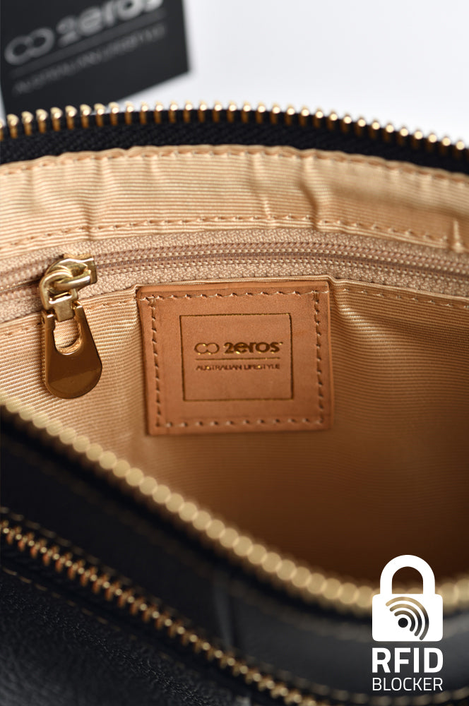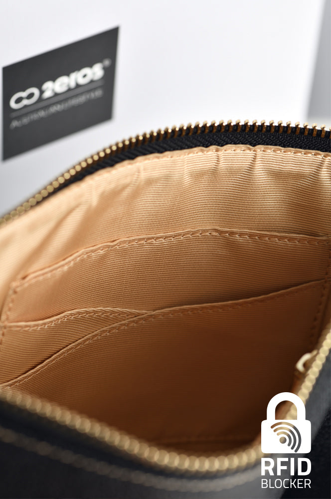 - Internal card slots and a zipper compartment for easy organisation